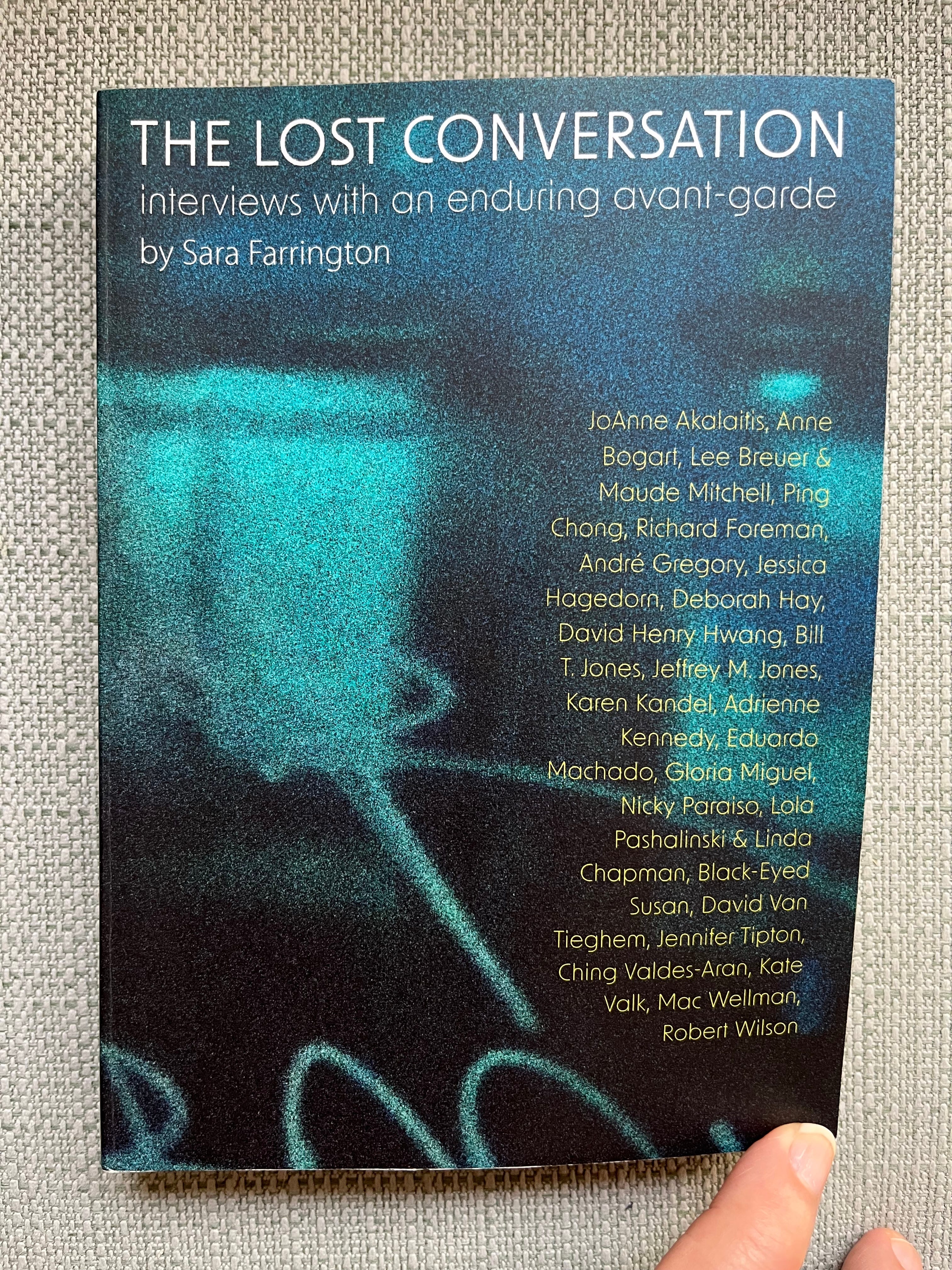 I’m practically the ideal reader for The Lost Conversation, Sara Farrington’s collection of interviews with 26 artists from the downtown avant-garde performance world. I’ve seen almost all of all these artists’ work, I’ve met and/or interviewed almost all of them, and I’m a sucker for Q&A interviews. Unlike journalists like me, whose interviews tend to spring from a particular project they’re promoting, Farrington conducted all of her interviews specifically for the book, mostly during the pandemic, leaping off from a specific burning existential inquiry. After a disastrous workshop of a new play, she felt lost, hopeless, and depressed, and she turned to veteran theater artists she admired to find out what has kept them going.